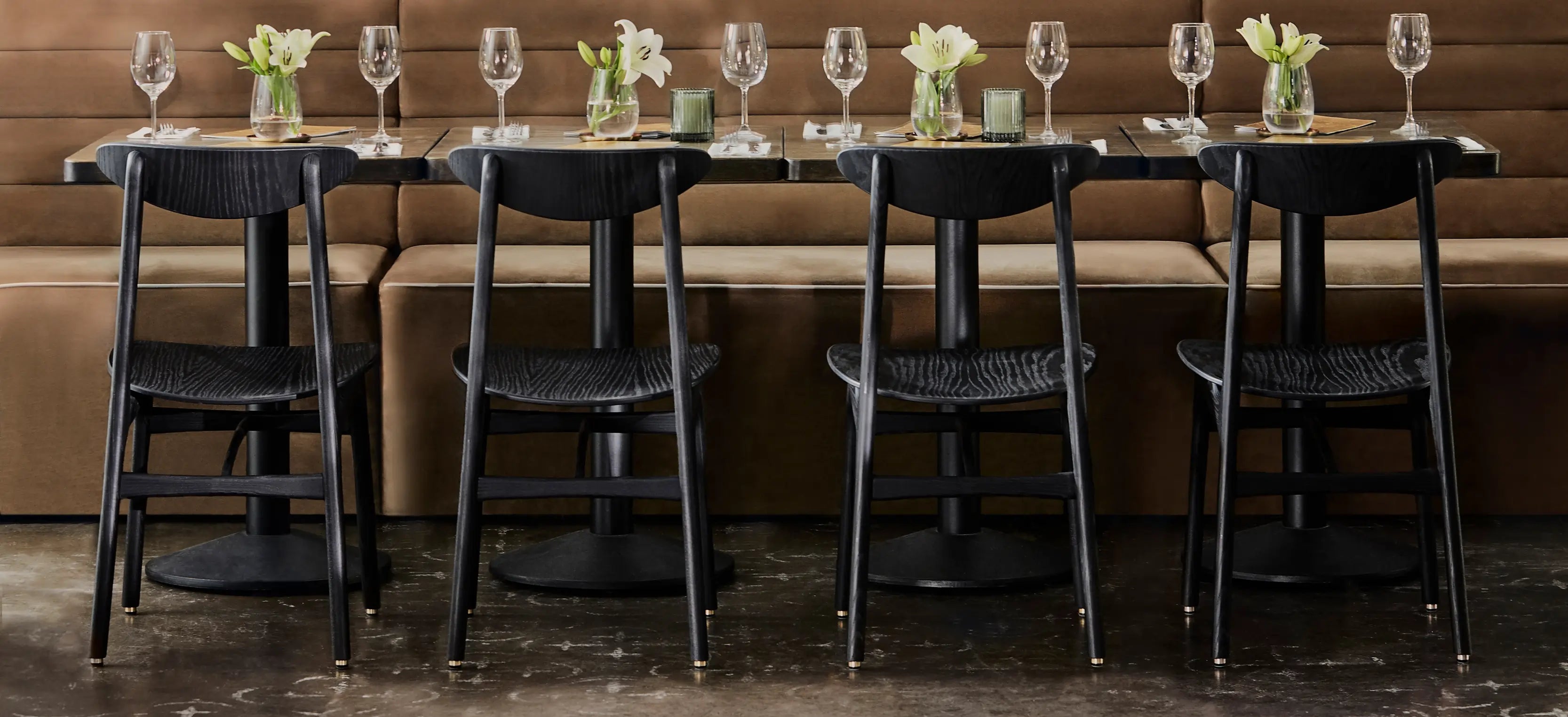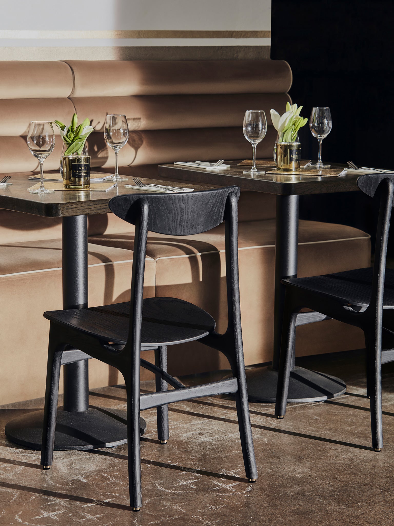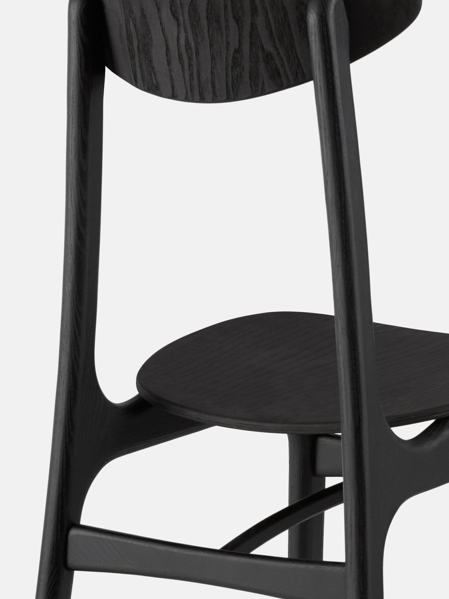 Its characteristic rounded backrest design combines the subtlety of art déco aesthetics and the economy of Scandinavian mid-century style.